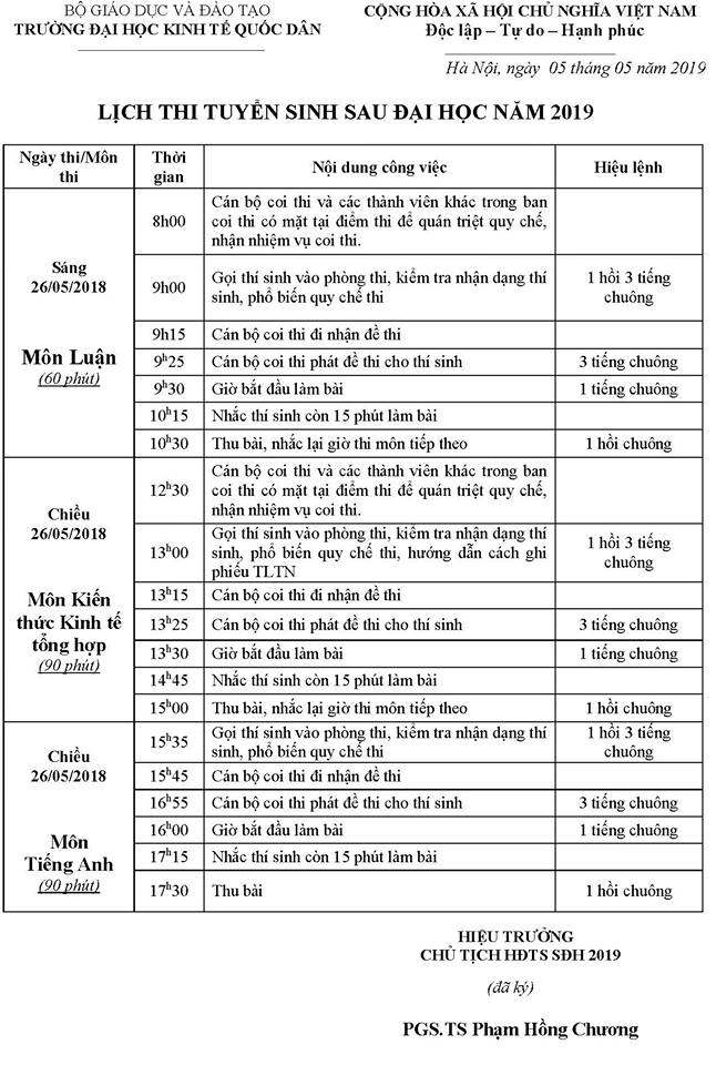 Thông báo: Lịch thi, Danh sách phòng thi và SBD tuyển sinh SDH NEU T5.2019