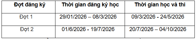 Tuyển sinh đợt 1: từ ngày 24/2/2026 – 08/5/2026.